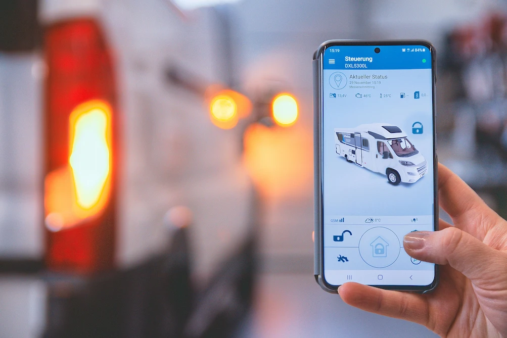 Dank integrierter SIM-Karte lässt sich die Anlage weltweit überwachen und das Fahrzeug per Smartphone öffnen.